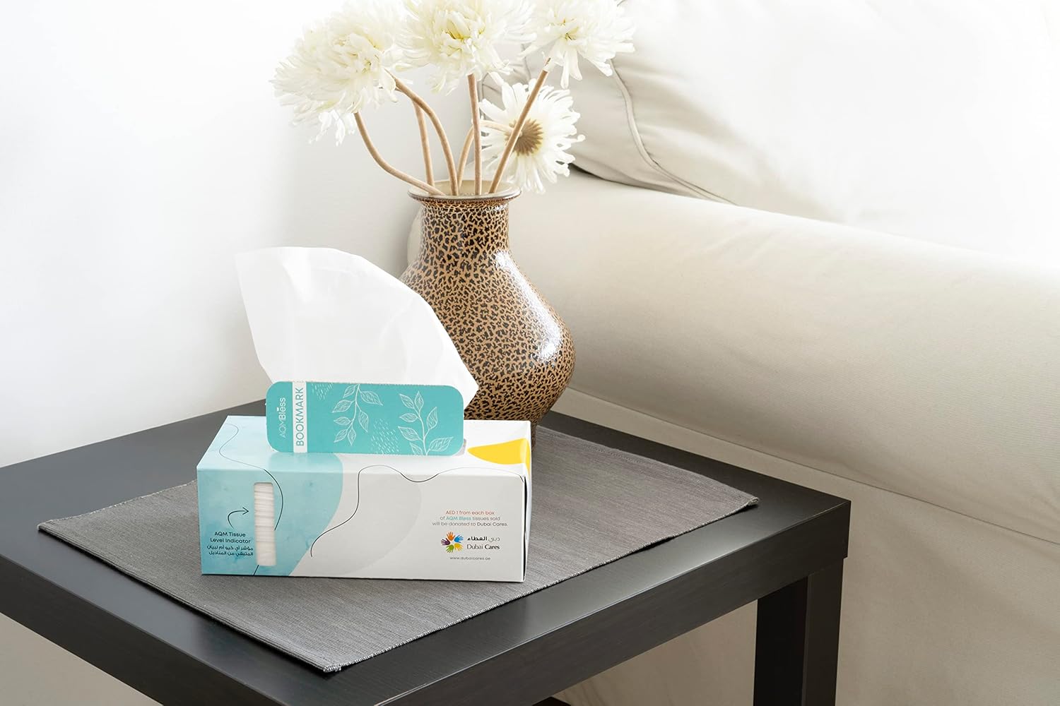 AQM Bless Facial Tissue Box - Multi-Use Box with Bookmark, Ruler, Recipes, Conversion Table, AQM Tissue Level Indicator, 5 Boxes x 200 Tissues Per Box (1000 tissues)