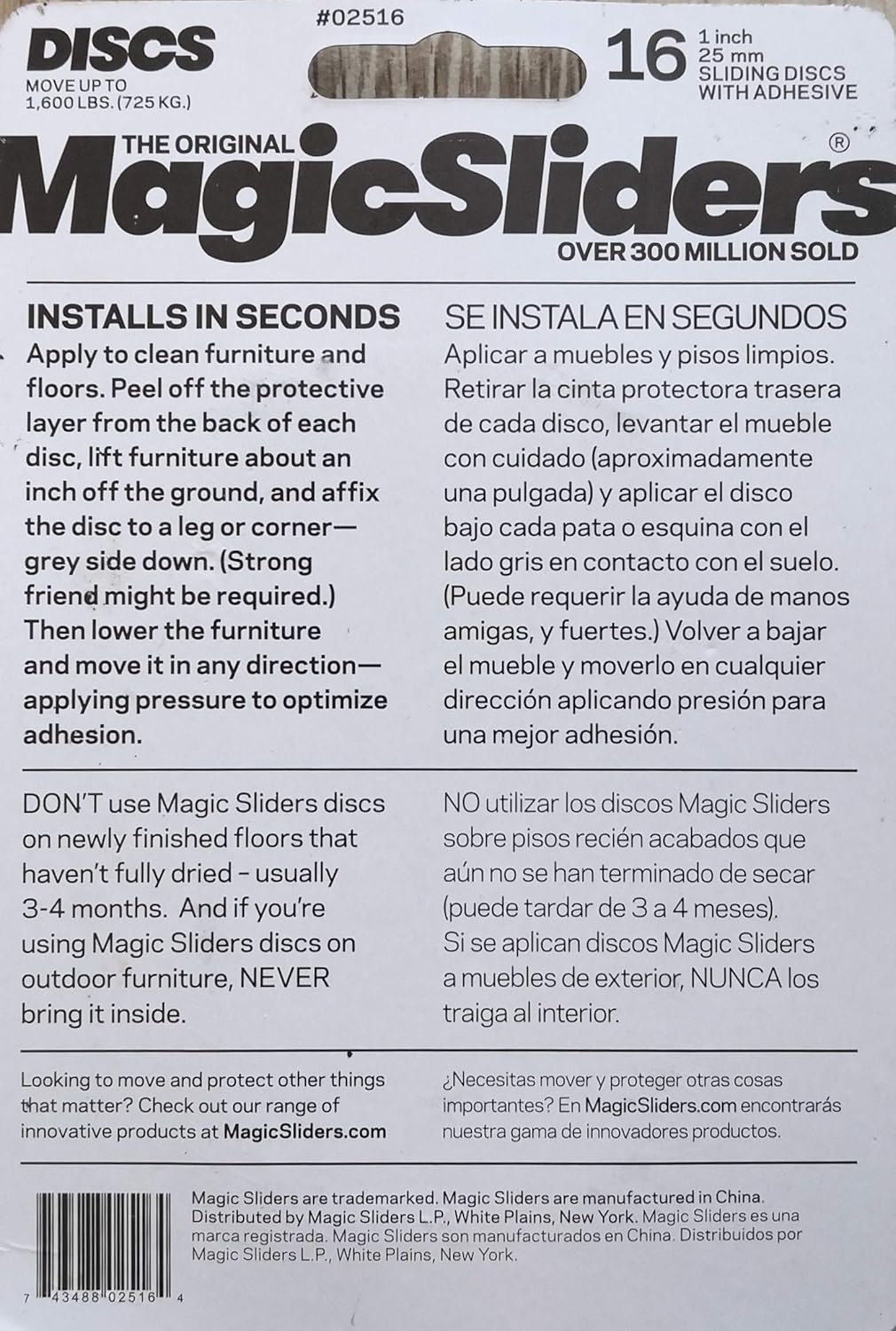 Magic Sliders 2516 - 1" Round Self-Adhesive Furniture Disc Sliders for Household Furniture to Protect Surfaces, Wood, Tile, Carpet, and Vinyl Floors (16 Pack)