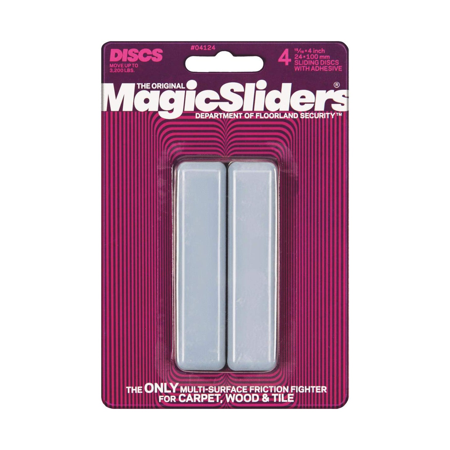 Magic Sliders 4124 -4-pack Rectangle Self-Adhesive Sliding Pads - Furniture Sliders for Household Furniture to Protect Surfaces, Wood, Tile, Carpet, and Vinyl Floors (15/16 x 4 in) (24mm x 100mm)